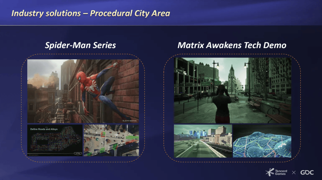 我们在寻找一些程序化城市解决方案,我们回顾了蜘蛛侠系列和《黑客帝国觉醒》技术演示。它们给了我们很多启发。