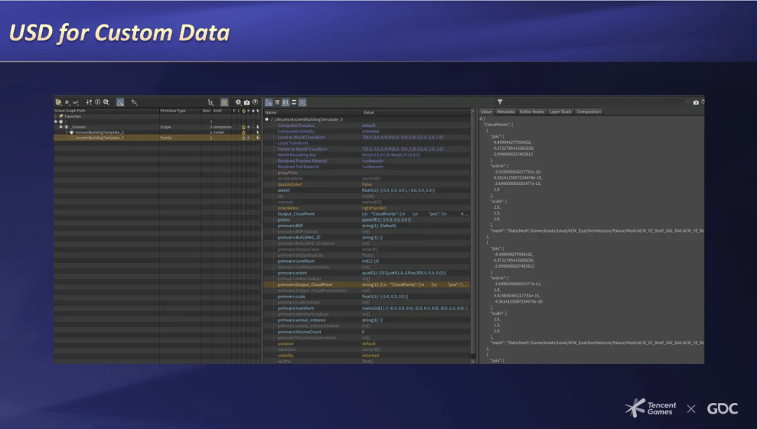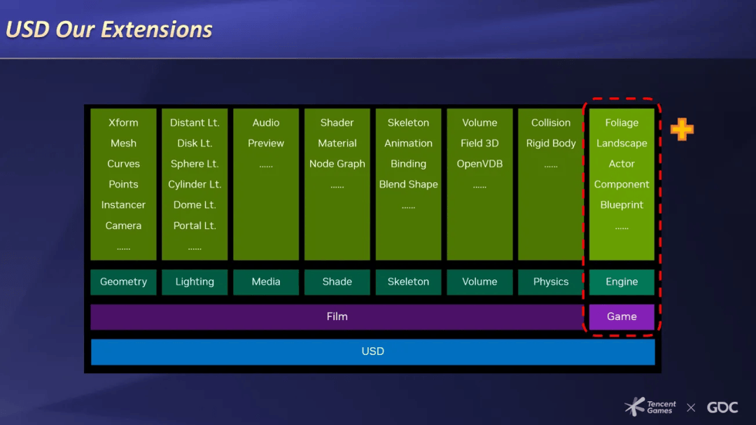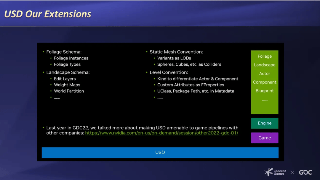 众所周知,USD诞生于皮克斯,为电影行业服务,许多功能都是围绕他们的需求开发的。另一方面,我们是游戏开发者,USD在某些方面尚未覆盖,例如在虚幻引擎中,我们有地形、植被、蓝图等。