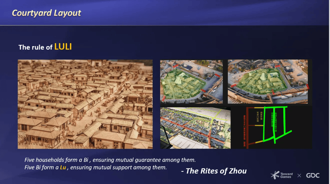 为了实现第二个目标,即尊重中国古代城市的布局要求。我们回顾了中国不同朝代的城市特征,我们发现每个朝代都有其独特的风格,像秦朝的闾里制和宋朝的街巷制。我们还调查了不同区域的布局规则,像居住庭院、花园、宫殿和传统寺庙,我们将在工具开发过程中尊重这种独特性。