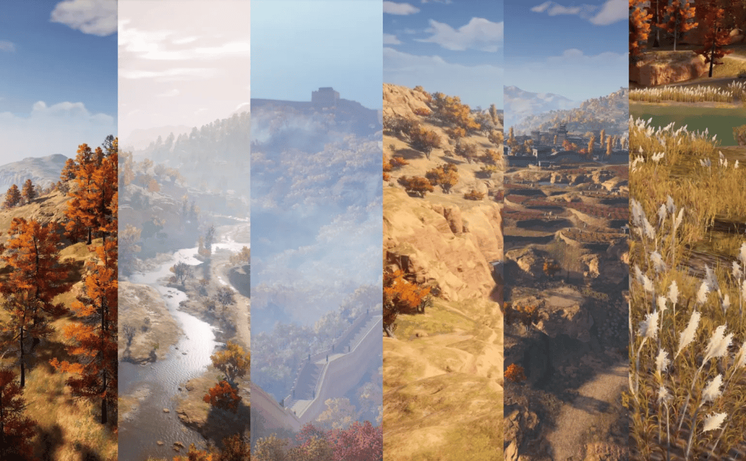 这是预告片的一个片段。我想展示一下我们之前做的一些自然环境方面的工作。如大家所见,过去几年我们一直在构建一款开放世界类型的手机游戏。我们的目标是拥有64平方公里的可玩区域。其中64%的世界将是自然环境。接近40%将是像小镇和大都市这样的以人类活动为中心的环境。