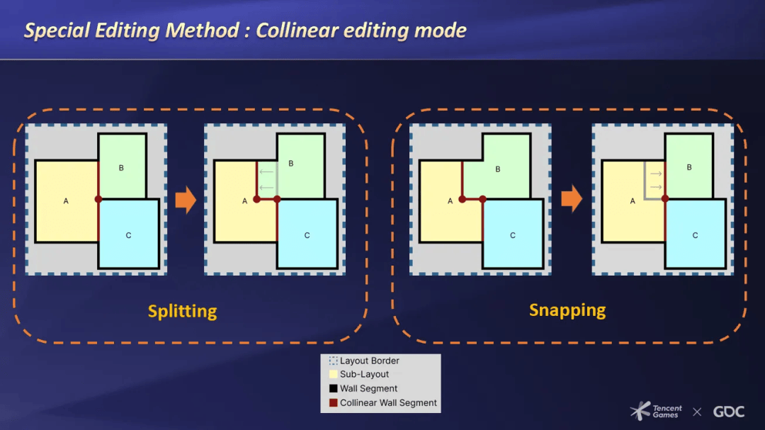 这种共线编辑模式是一种基于几何算法的操作,灵感来源于室内设计理念。当艺术家拖动布局边缘时,会触发拆分或吸附行为,以帮助艺术家重新定义现有布局。