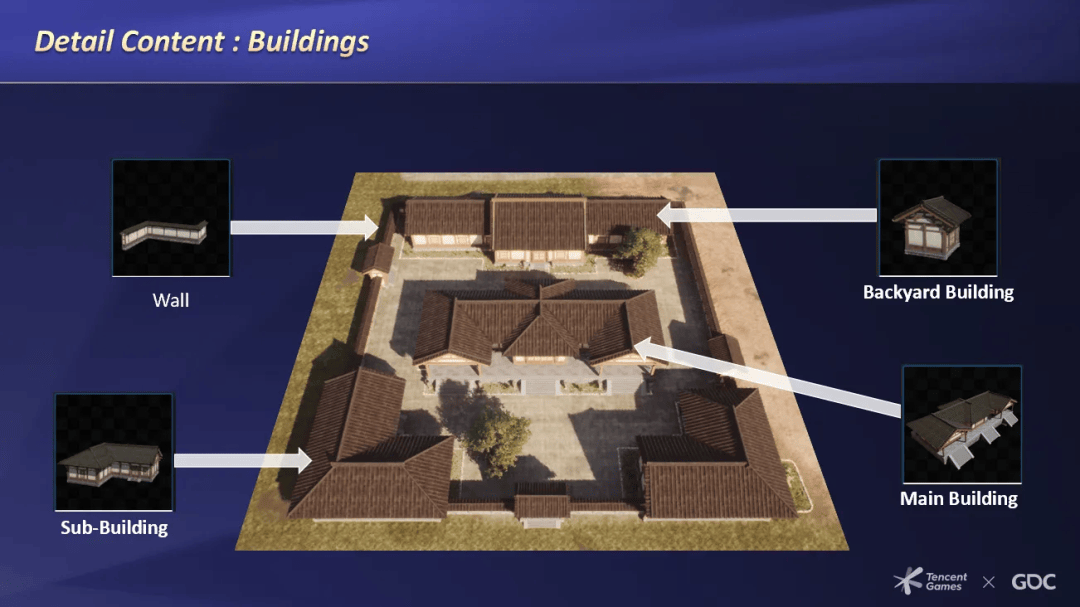 所以我们的技术美工将输入区域块划分为至少一个带有英雄建筑的主庭院。