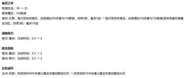 暴烈之甲削弱:物攻增加5点,5%移速转移至被动中,叠满十层被动触发。