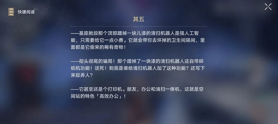 其次是游戏的创新机制。星穹铁道以银河冒险为主题,将探索、战斗、解谜等多种元素巧妙地融合在一起,形成了独特的游戏体验。此外,在探索的细节上,文案组也是下足了功夫,各种彩蛋增加了探索欲,也保持了玩家对游戏的新鲜感。