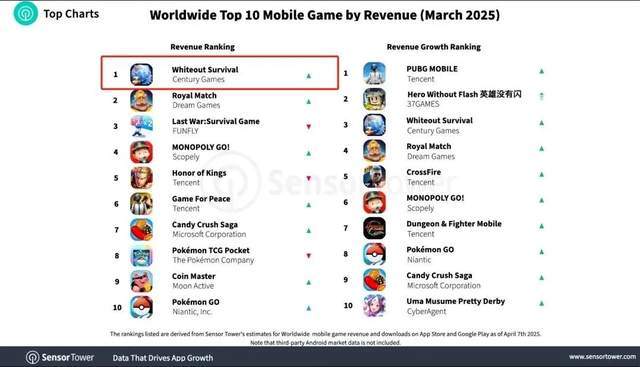 2025年3月,《无尽冬日》登顶全球手游收入榜