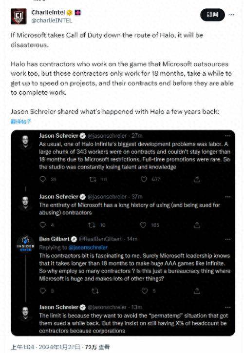 而知名游戏记者Jason Schreier表示这是由于微软的限制,他们在微软的工作时间不能超过18个月。很少有全职晋升,所以微软不断失去人才。