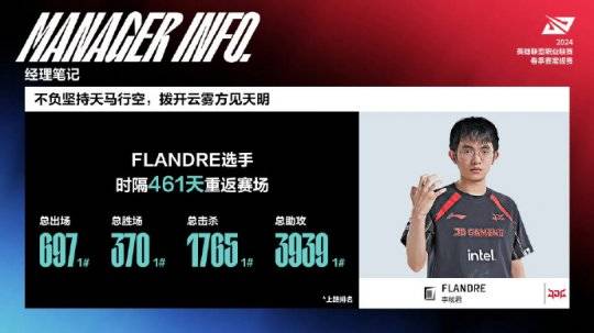 圣枪哥有着极为辉煌的个人生涯履历,在总出场数、总胜场数、总击杀数以及总助攻数方面,他都是LPL上单点位上的第一人。这次的回归,意味着各项数据还有进一步提升的空间。JDG本身的实力,也能帮助他实现这点。