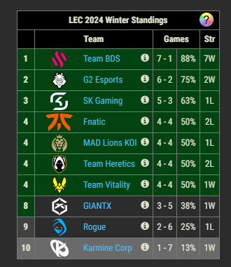 配合愈加默契、选手更加自信,这些都在表明KC的状态正在回暖。只不过从战绩层面来说,KC已经没有机会了。由于LEC冬季赛的第二阶段是10进8,当前战绩1-7的KC无论最后一场比赛胜负与否,属于他们的冬季赛之旅都结束了。他们所能做的,只有提前备战新赛季。