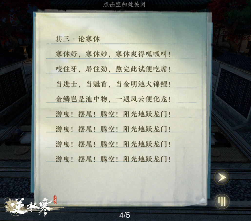 《逆水寒》手游确实给玩家打造了一个会呼吸的江湖,玩家在探索的过程中也体验到了不一样的惊喜,不知道你们在新春版本中还发现了哪些惊喜彩蛋呢?