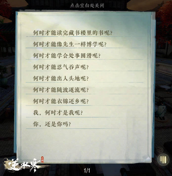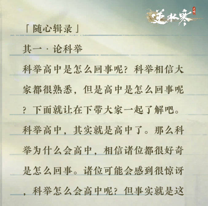 在会呼吸的江湖,处处都隐藏着惊喜,比如在汴京太学馆内就有一个很有意思的彩蛋。太学馆掉落的纸团上记载着太学生们的精神状态,随便捡起一个纸团就会发现古人还挺好学,有的每天都在自省,写随笔聊以慰藉。