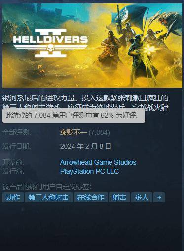 不过该作Steam目前评价为褒贬不一,好评率仅为62%(7084)。