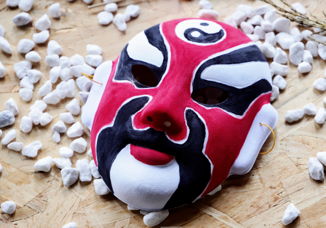 脸谱,是中国传统戏曲演员脸上的绘画,用于舞台演出时的化妆造型艺术,它的产生有着悠久的历史。脸谱起源于面具,脸谱将图形直接画在脸上,而面具把图形画在或铸在别的东西上面后再戴在脸上。