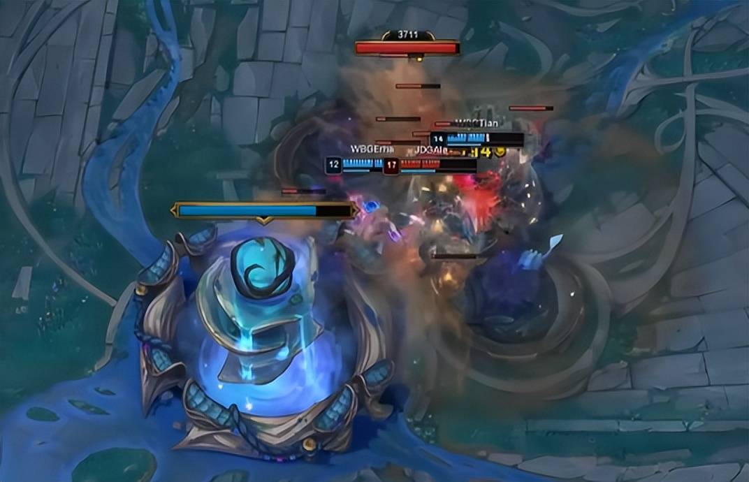 当然,这一局JDG选手的表现也十分神奇,前有阿乐不打团,孤身一个人拆基地被逮捕,后有Scout永恩试图单挑有大有晕的安妮,被对面当成路边的野怪给补了。