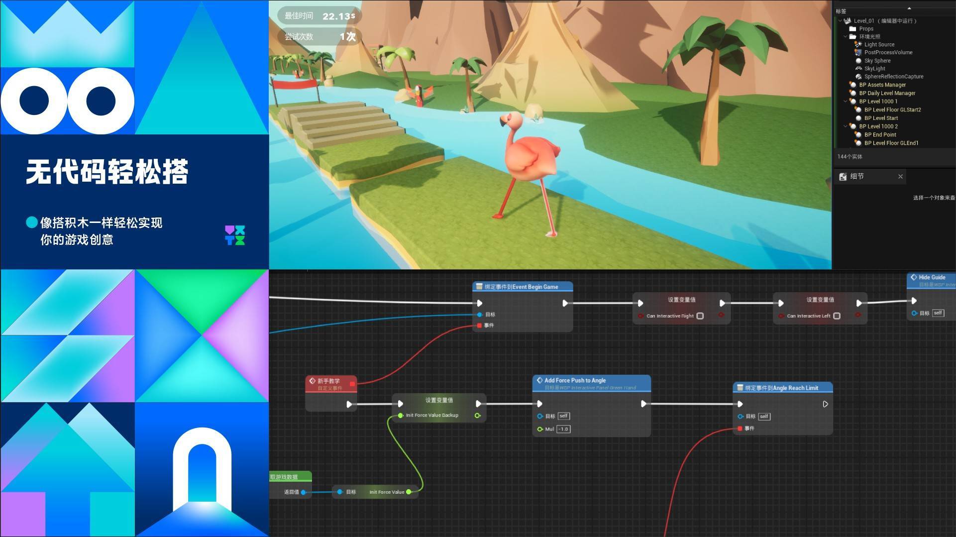轻游梦工坊作为一款无代码游戏编辑器,以其简单易用的特点,大大降低了游戏制作的门槛。它预制了多种功能组件、局外系统和玩法模板,让开发者无需编写代码即可轻松编辑关卡、资源、数据和逻辑。同时,它还内置了超万种免费美术资产,并持续更新,为开发者提供了丰富的创作素材。强大的AI工具也为游戏创作提供了有力支持,开发者可以运用AI工具生成模型、角色和图片,实现个性化美术资产的零门槛制作。
