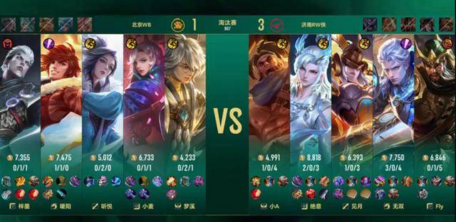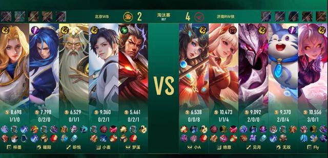 WB扳回一局之后,第四局选了个发育路元歌,不是你会玩吗就选。10分钟的暴君团小麦交了大招过墙,直接被fly的关羽大招推到,女娲一个大招拿到人头。小A的苏烈大闪拍三个,关羽和铠再次进场,两边的团战强度完全不是一个级别,RW侠直接打了个零换五。