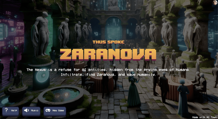 独立游戏制作人 Ramón Darío Iglesias 制作的这款游戏名为《Thus Spoke Zaranova》的游戏,可以让你穿梭于一群AI当中,与他们交谈、偷听他们对话(即时生成的)、套取信息,保护这块名为Nexus的区域。