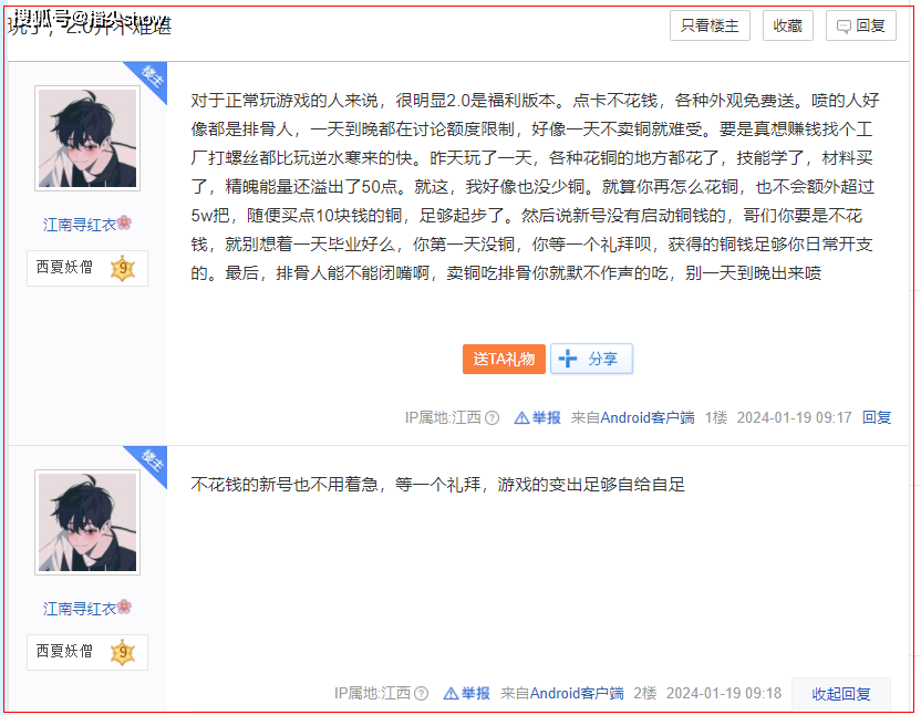 直到《逆水寒》2.0正式开放后,充足的玩家实例证明了猪厂这波确实做到了如此成就,但这些人还是不死心,转而黑起了《逆水寒》取消绑定货币后,新玩家是否会缺钱。