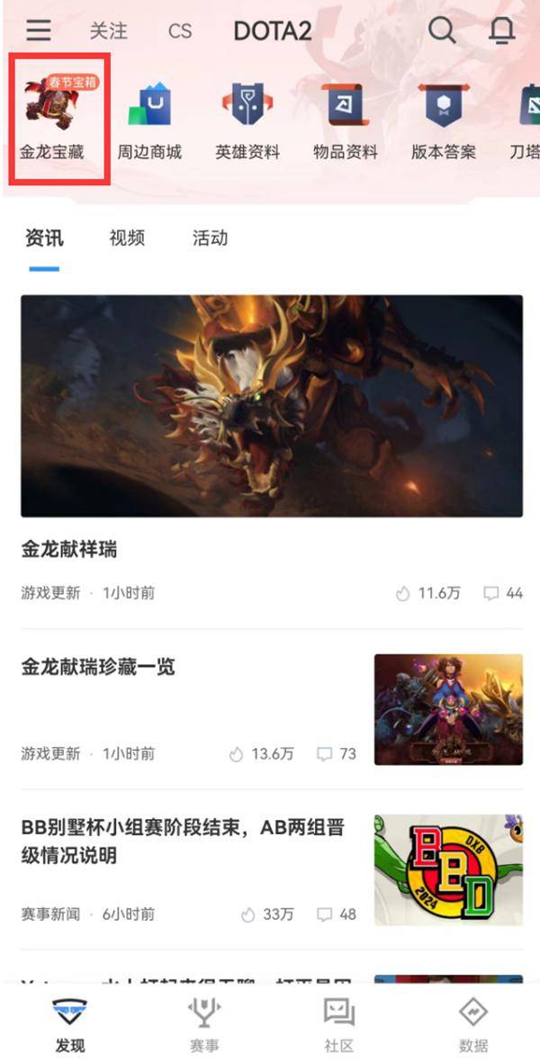 公元2024年北京时间2月9日,也就是中国农历的大年三十,DOTA2上线了金龙宝藏来庆祝即将到来的龙年春节。现在前往DOTA2客户端或在手机端打开完美世界电竞APP即可购买宝藏。