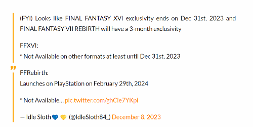 SE再次确认:《FF16》《FF7:重生》的独占时间没变
