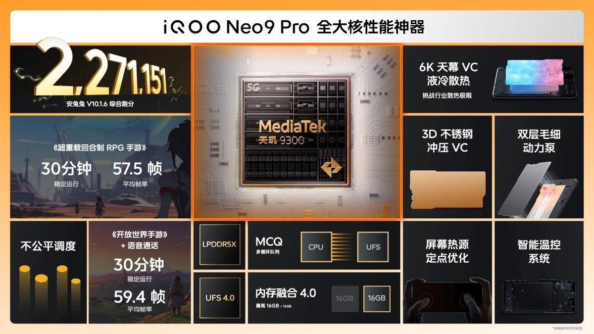 之所以说iQOO Neo9系列可以做到拉高游戏性能上限,就不得不说iQOO一直以来坚持的“双芯配置”。而这次Neo 9系列全系标配的一个旗舰核心则是“全大核”架构天玑9300,这颗旗舰级的芯片性能在游戏、影像、AI等方面中的实力大家显然已经不会陌生。