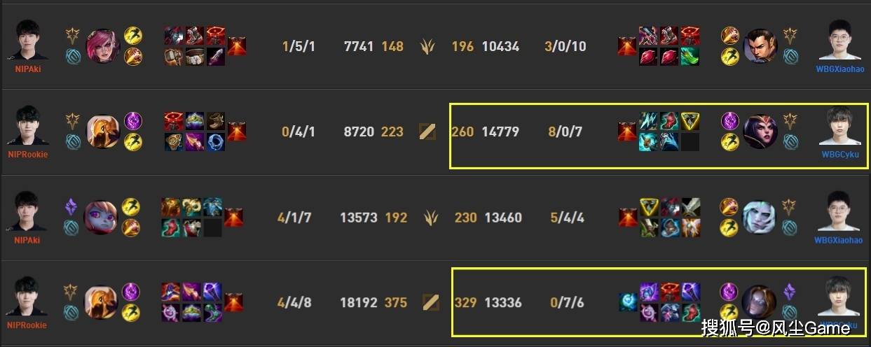 在双方的第一场比赛中,NIP明显没有找到状态,尤其是中路的Rookie,被新人小将所压制,加上下路对线也打不过,第一局是完全被WBG碾压,仅仅25分钟就结束,WBG中单首秀,一手妖姬就打出了8-0的超神战绩,当所有人都以为,WBG要3:0轻取时,却出现反转。