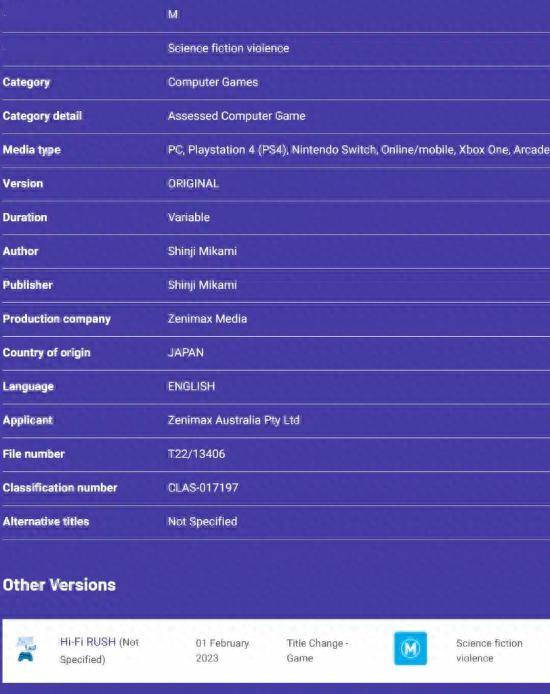 越来越多的迹象表明,《Hi-Fi Rush》或许真要登陆NS平台。今日有玩家发现,该作的澳洲评级信息中出现了PS4和Switch两个平台,几乎坐实了该传闻。