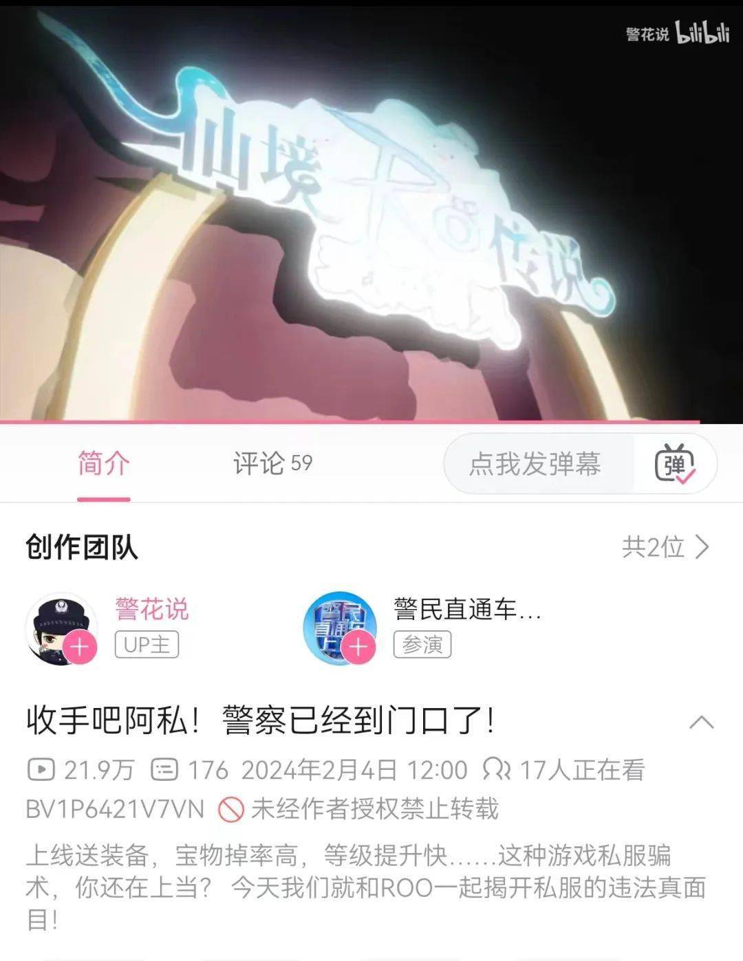 后续他们又发布了与上海青浦警方及警花说的联动视频,只为用最具娱乐性的方式,向对盗版生态不了解的群众科普私服的危害,增强玩家警惕心。