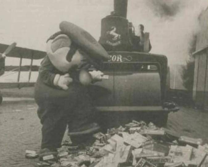 1994年任天堂使用压路机销毁盗版游戏的照片