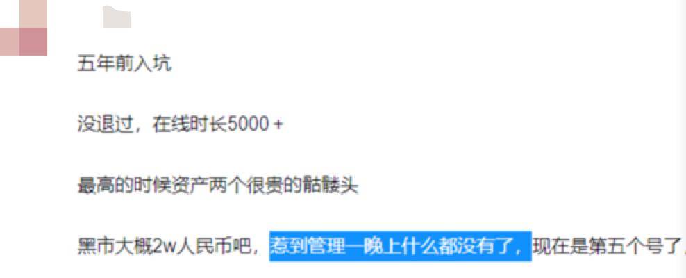 然而,没有官方维护的私服不仅仅趁游戏热度疯狂涨价,还极不稳定,部分玩家辛辛苦苦肝的进度,轻而易举地就会因一些意外导致丢失,游戏体验极差。