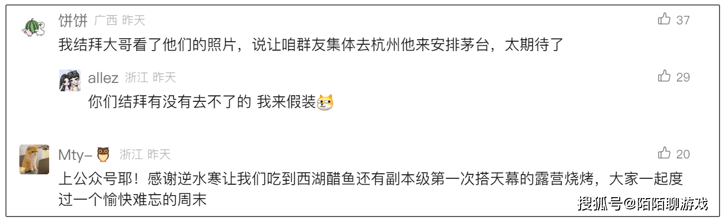 各个服务器老铁都表示:以前曾经不少次线下面基,只是这次,官方组织的VVVIP饭局,让全国各地的玩家都齐聚一堂,这一刻的友情具象化,因此非常感谢官方的宠粉行为,