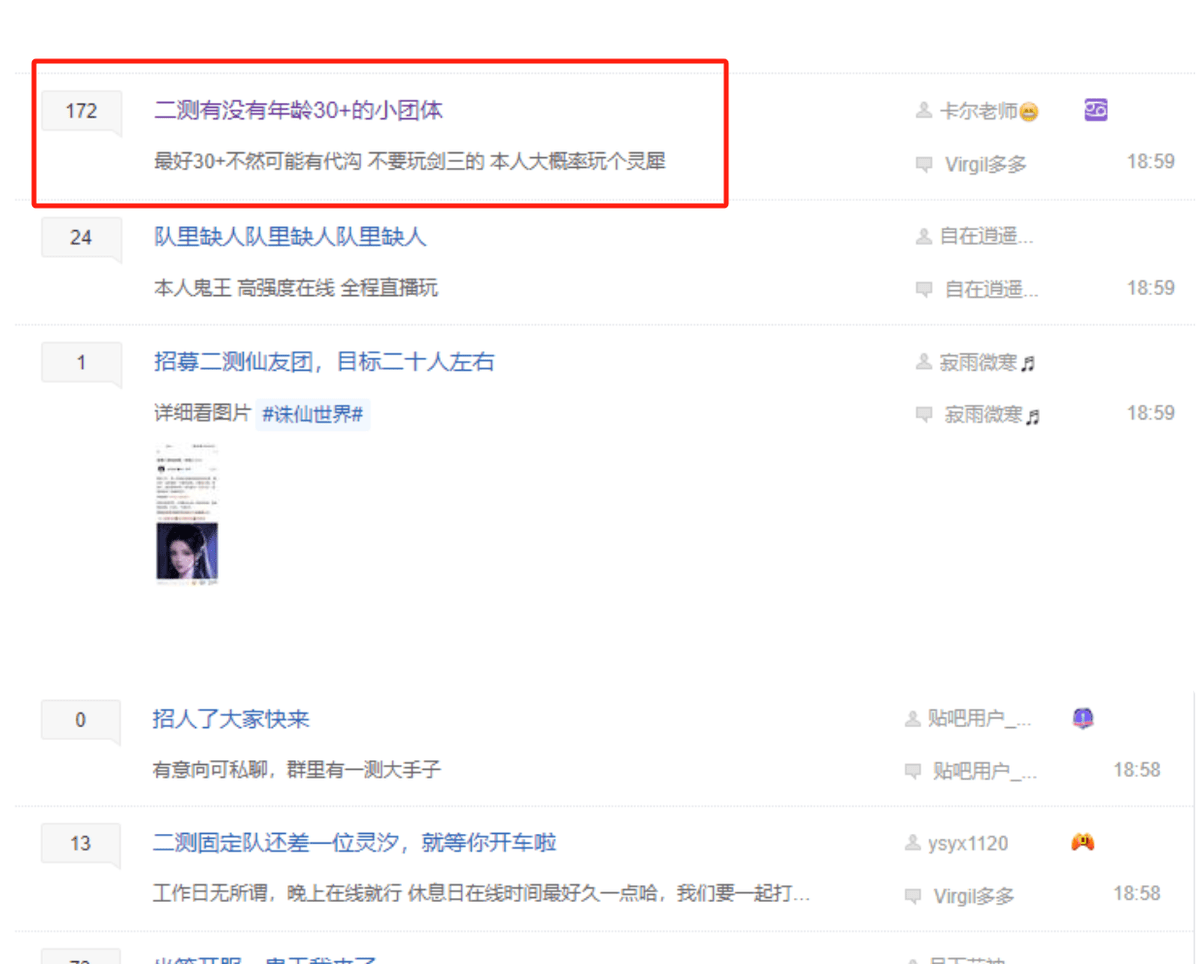 进入诛仙世界的贴吧,更是能看到各种招募的贴子,那个固定年龄30+的车队,你是认真地吗?不过,这也从侧面说明了,诛仙世界这次信心十足!(这可不是自夸)并且玩家受众还是十分广泛的。