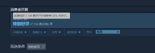 目前游戏在Steam的好评率为92%,共有7159条评价,为特别好评。