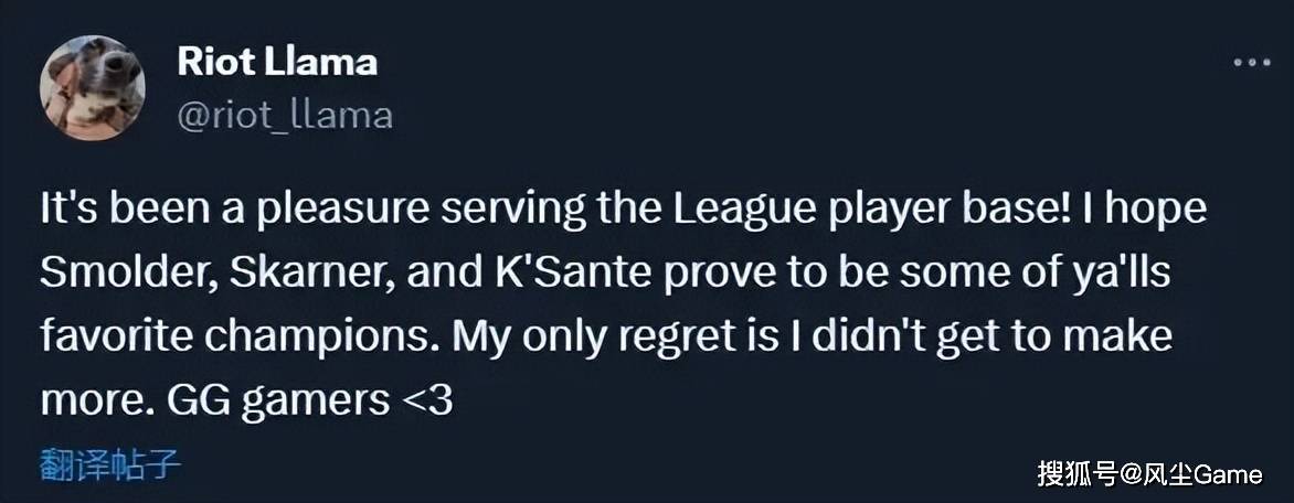 亏桑提设计师Liama在近日,发文透露自己在本次裁员名单当中,作为英雄联盟官方设计师,他设计过亏桑提、新版蝎子,以及刚上线的新英雄斯莫德,奎桑提算是Liama设计最成功的英雄了,不仅路人局选取率很高,在职业赛场上也备受青睐,而且许秀还贡献了圣经。