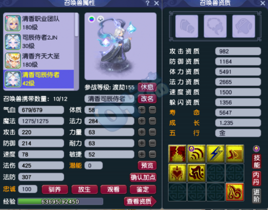 寒假资料片来袭后,大部分少侠便开始炼妖心仪的召唤兽。近日,有位175小伙伴联系小生,他通过不断的持国+司辰合宠,终于炸出6技能须弥司辰。它的整体资质都不错,小伙伴就决定往任务方向打书。