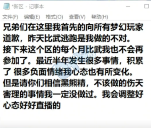 事件发生后,不少玩家都指责梧桐。梧桐也在今天下午开播时,给所有玩家道歉:比武逃跑是自己做错了,但没有做过伤天害理的事情,并承诺以后不再参与纪念区的比武大会了,会调整状态做好直播的。