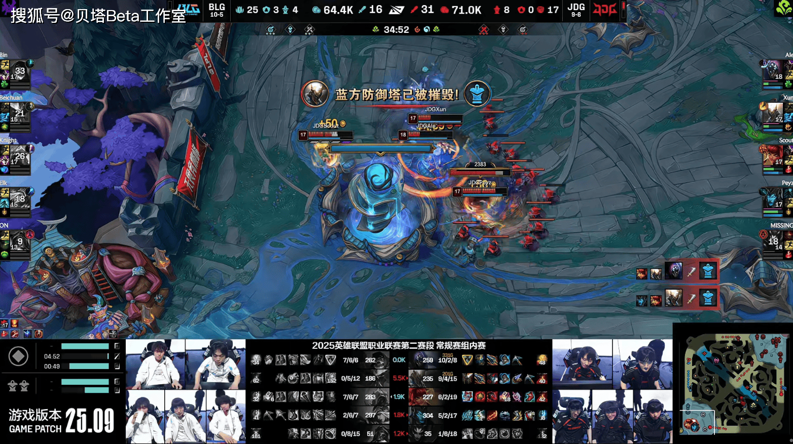 LPL登峰组第二轮BLG和JDG的BO3,双方大战2局之后,BLG以0-2的战绩不敌JDG,6连胜惨遭终止,这也是北川加入后的首次失败。而JDG则是走出颓势,随着这场比赛的胜利豪取3连胜。