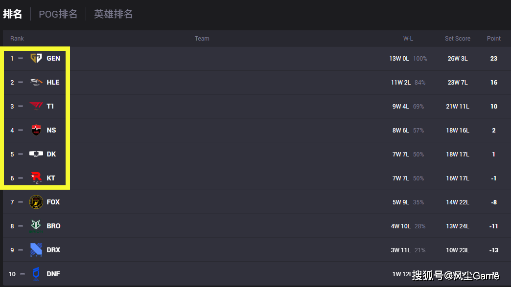 LCK第二赛段常规赛,再有11个比赛日,22场比赛就结束了,现阶段的季后赛形势,已经相对明朗,KT赢下BRO之后,战绩来到7-7和DK持平,排名第六的队伍,跟第七名有2分的差距,不出意外的话,T1、NS、DK、KT这四队,应该都能打进季后赛,但除了T1之外,剩下三队都很弱。
