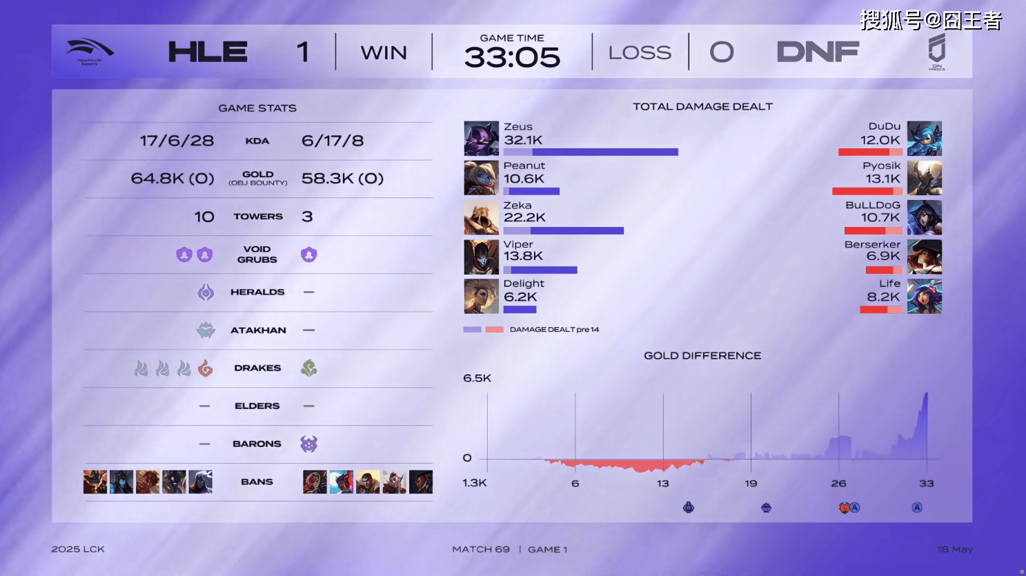最终HLE轻松零封DNF,继续保持追赶GEN的脚步;而DNF则是继续垫底的步伐,没有什么好说的。
