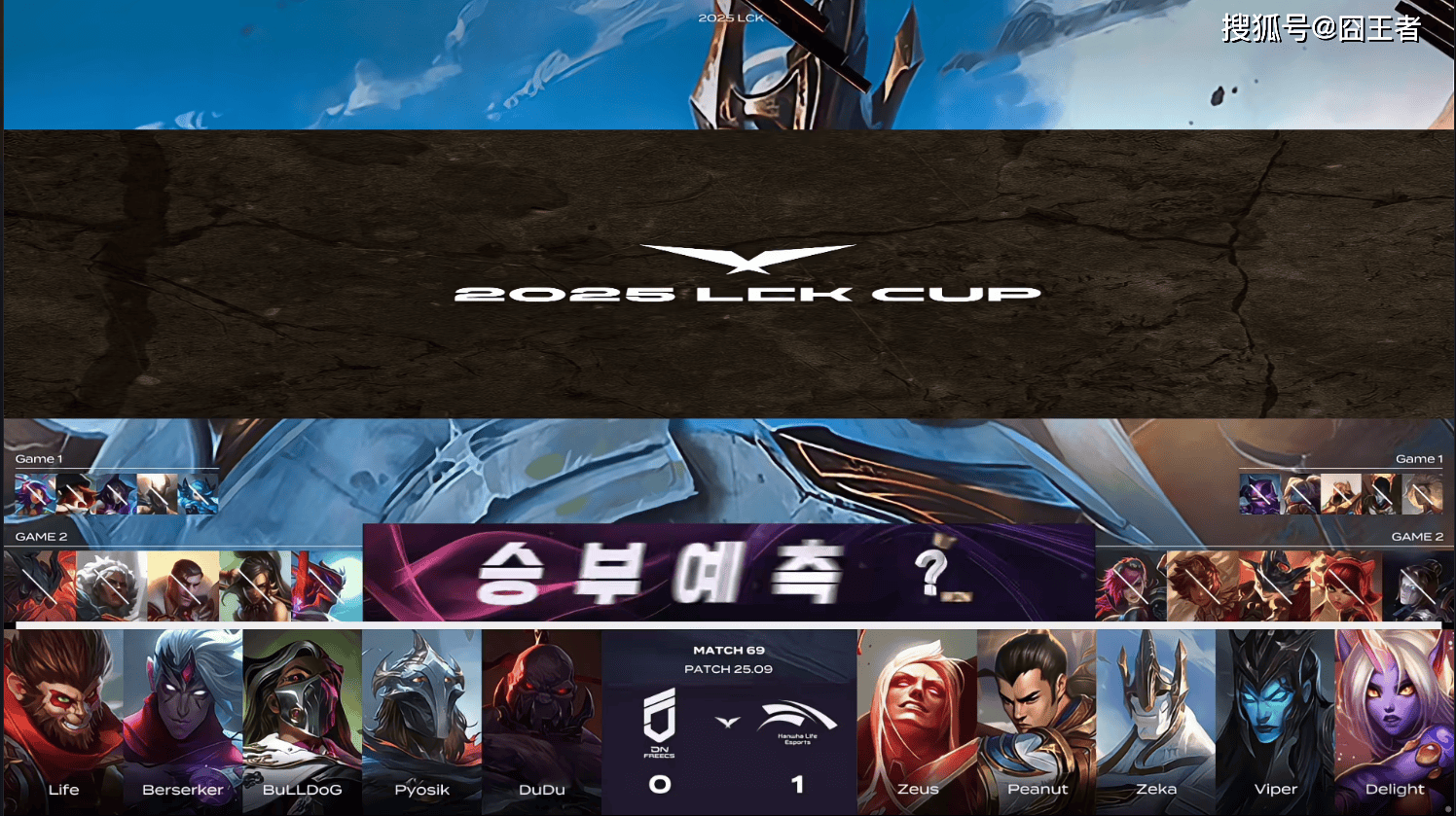 第二局比赛,DNF蓝色方,禁用:永恩、豹女、杰斯、安蓓萨、剑魔,选用:DuDu塞恩、Pyosik猴子、BuLLDoG维克托、Berserker韦鲁斯、Life烈娜塔;HLE红色方,禁用:蔚、岩雀、兰博、安妮、发条,选用:Zeus吸血鬼、Peanut赵信、Zeka加里奥、Viper卡莉斯塔、Delight索拉卡