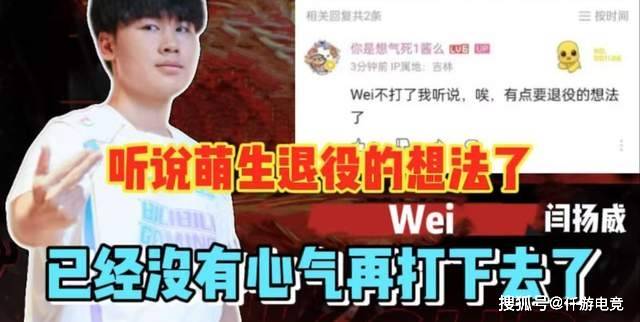 这个UP主在全网有上百万的粉丝,在LOL圈子中应该是有点人脉和资源的。他在回应自己粉丝“建议Wei去找WBG战队找小虎”的问题时就说:“Wei不打了,我听说,唉,有点要退役的想法了。”然后又有网友在这个话题下继续补充说:“小Wei没心气(打比赛)了。”