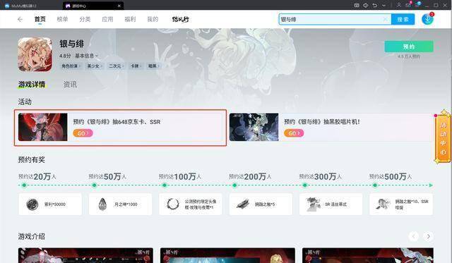 银与绯游戏礼包可以直接在MuMu福利中心领取,具体方法如下: