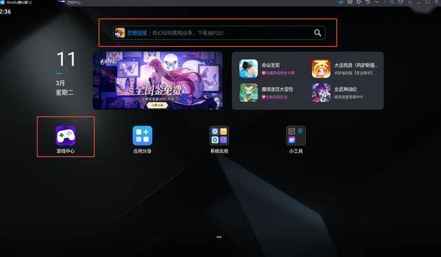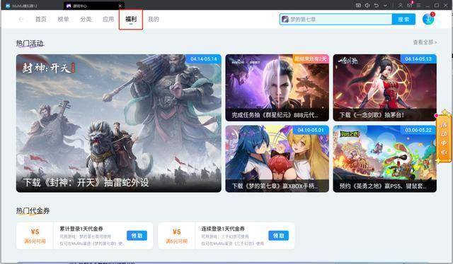 1、在MuMu模拟器桌面搜索“领取福利”,点击打开福利中心;
