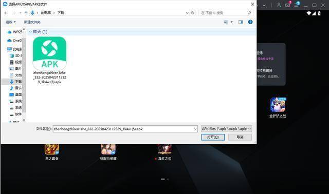 方法二:如果游戏中心没有找到需要的应用,可以通过apk安装,将安装包拖动到模拟器桌面即可进行安装操作。