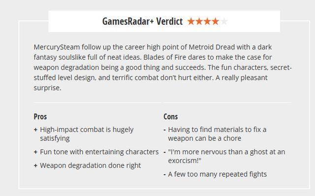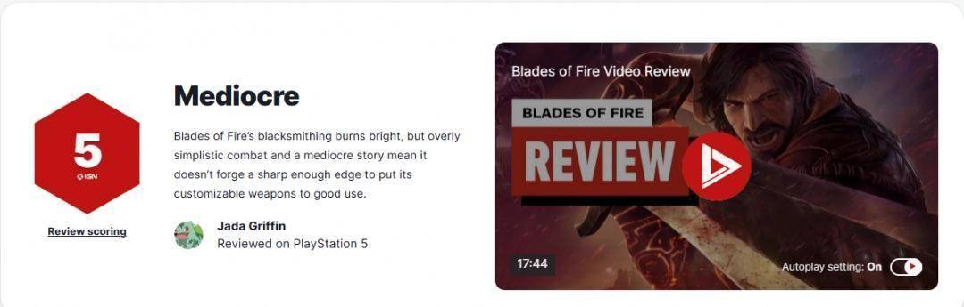 《烈焰之刃》采用写实与奇幻融合的美术风格,场景设计宏大且细腻:锈蚀的钢铁废墟、哥特式城堡与弥漫雾气的沼泽共同构建出黑暗时代的视觉基调,其战斗表现尤为突出——武器挥击时摄像机动态追踪动作轨迹,配合喷溅的血液与断肢特效,营造出暴力美学的冲击力。目前,该游戏媒体评分已经正式解禁,M站PS5版均分为75分,其中知名外媒IGN为本作给出了5分的评价,媒体Gamesradar给出了8分的评价。