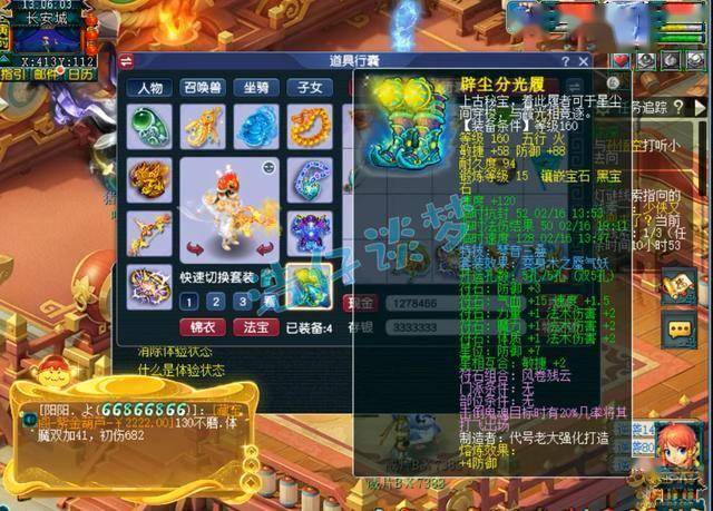 160级带琴音三叠的蜃气妖套鞋子,打了15锻黑宝石。
