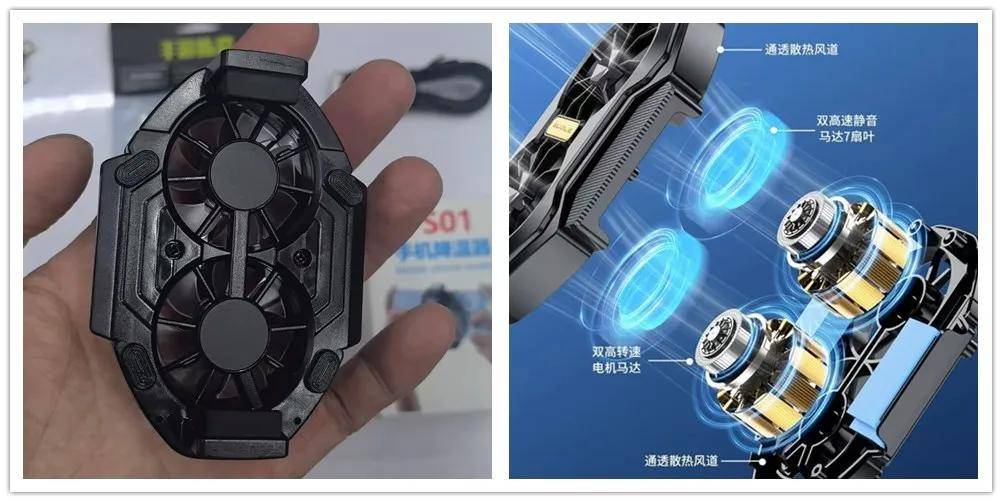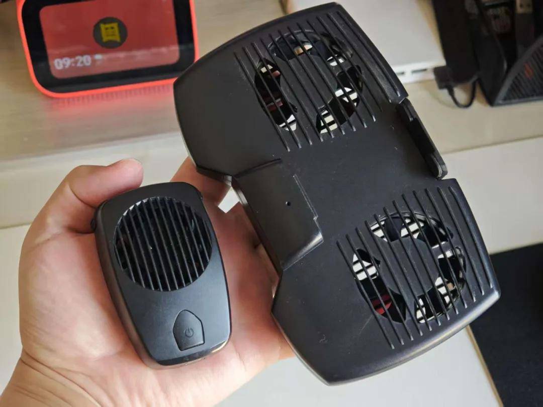 第一种散热方案是风冷,这是早年最流行的方案,有单背夹和手柄背夹等造型。原理跟笔记本散热底座类似,通过吹风或抽风给手机后盖降温,顶多能降个三五度。