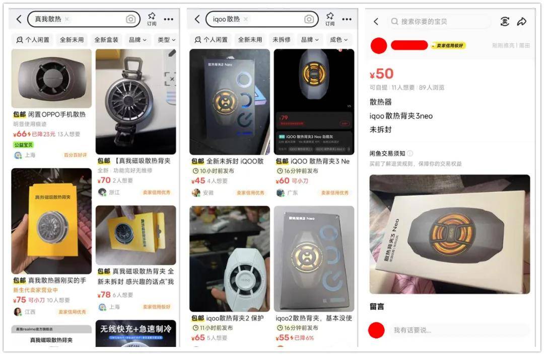 在主流大厂中,iQOO、真我等牌子的半导体散热背夹更便宜,主力价格区间不超百。比如iQOO散热背夹3 Neo最大功率是22W,小黄鱼全新未拆封最低能干到50元。