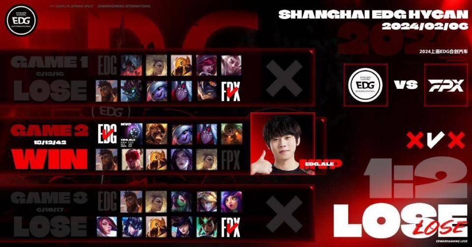 现在摆在EDG面前的只有两条路,一条路是固定ale首发,然后配合jiejie,看看有没有什么破局的方法,另一条路就是ale和jiejie都替补,让新人上场,这赛季直接放弃,下赛季再重组阵容,不然可能这赛季下来,ale和jiejie都打废了,那就完了。