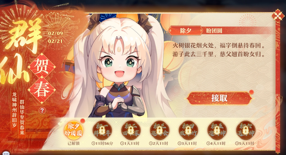 “群仙贺岁”玩法就更简单了,在除夕到年初六一共六天的时间里,每一天都会解锁一个剧情,各位接取后可以体验剧情,每一段剧情都展现了不同地区的传统年俗,可以说是足不出户就能感受到全国各地的浓厚年味。