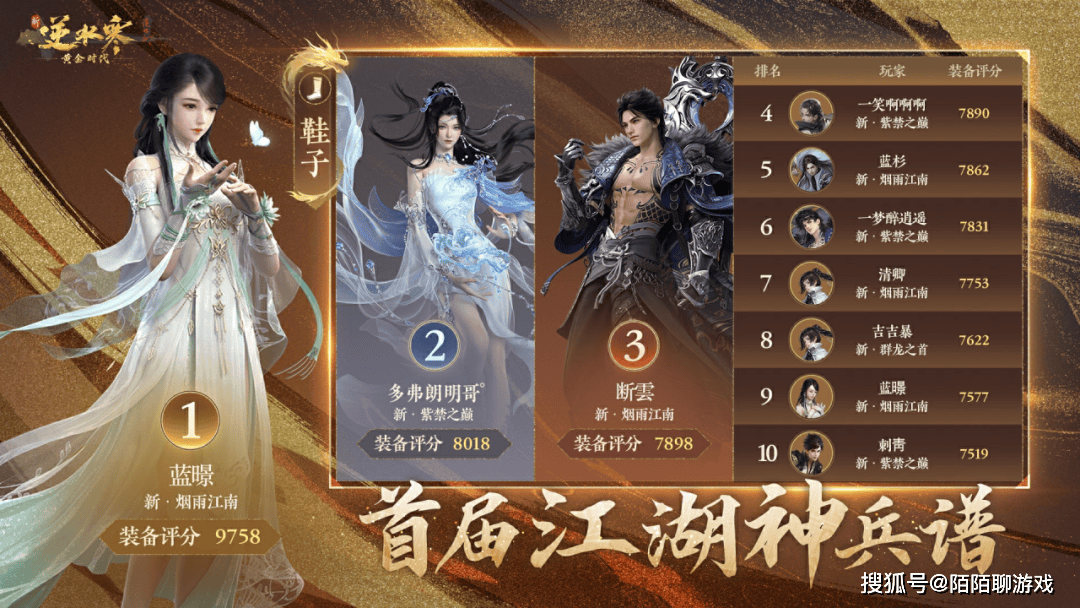 有关注过《逆水寒》的玩家,肯定对这位蓝杉大佬不陌生,从正式服再到赛季服、黄金服,这位大佬创下了无数传说,在入坑黄金服后,甚至让自己的小号登上了官方举办的“黄金服神兵评选”活动榜单。